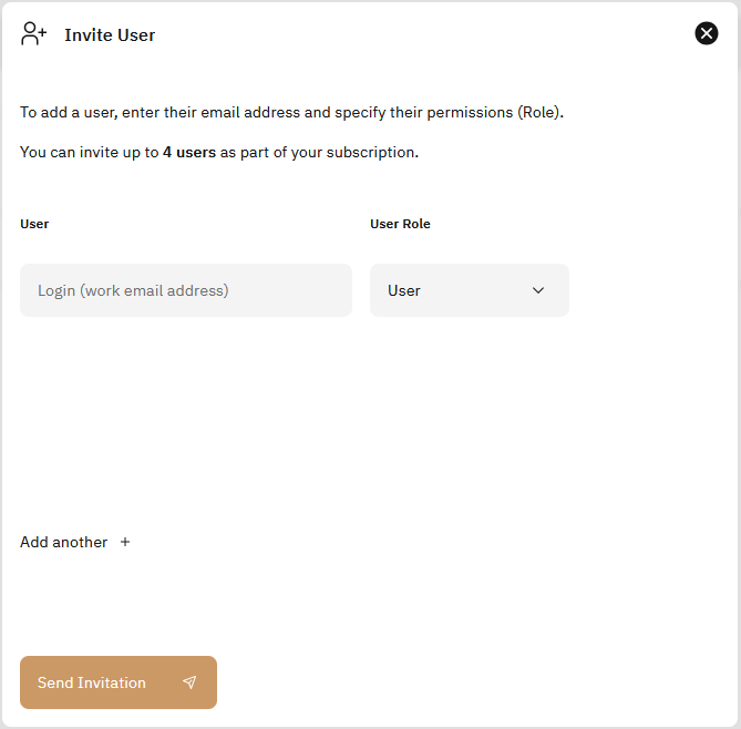 To add a new user, simply click on the ‘Add User’ button located at the top of the page. An invitation link will be sent to the company email, allowing the user to set up their account with the role they have been assigned. Additionally, you have the option to add multiple users simultaneously. The status of each invitation will be displayed in the ‘Users’ tab.