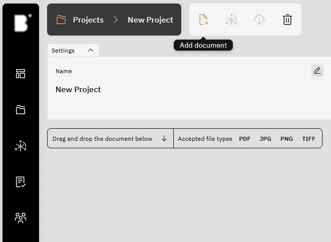 Click the “Add Document” button to upload a file to the project of your preference.